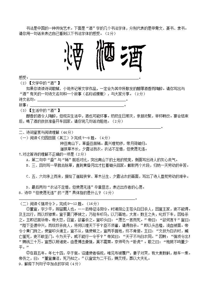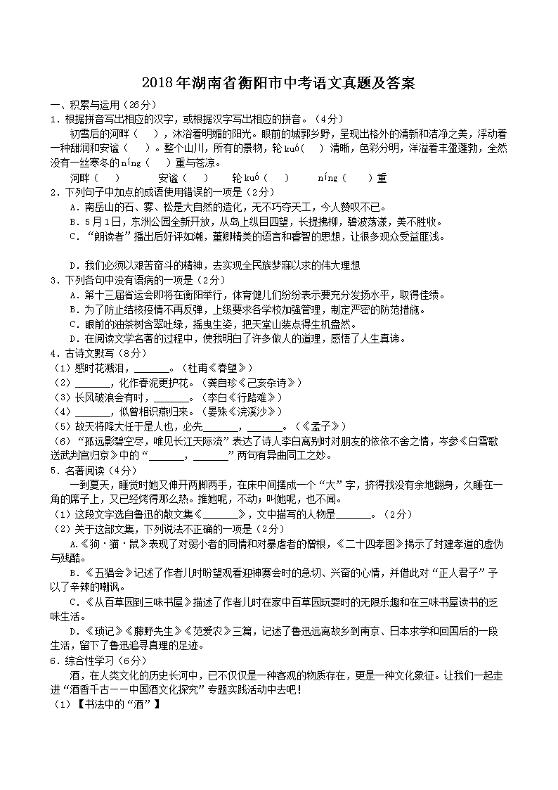 【文档名称】 2018年湖南省衡阳市中考语文真题及答案(Word版).doc