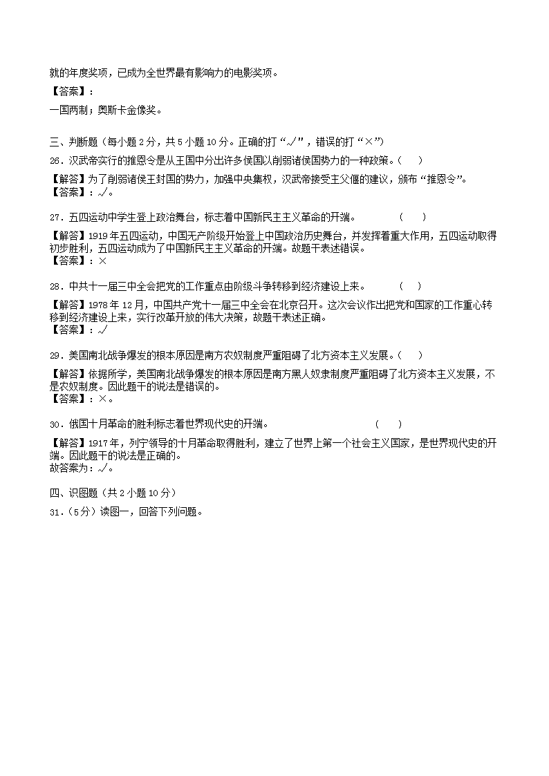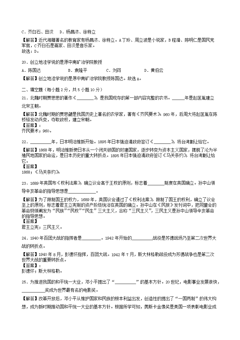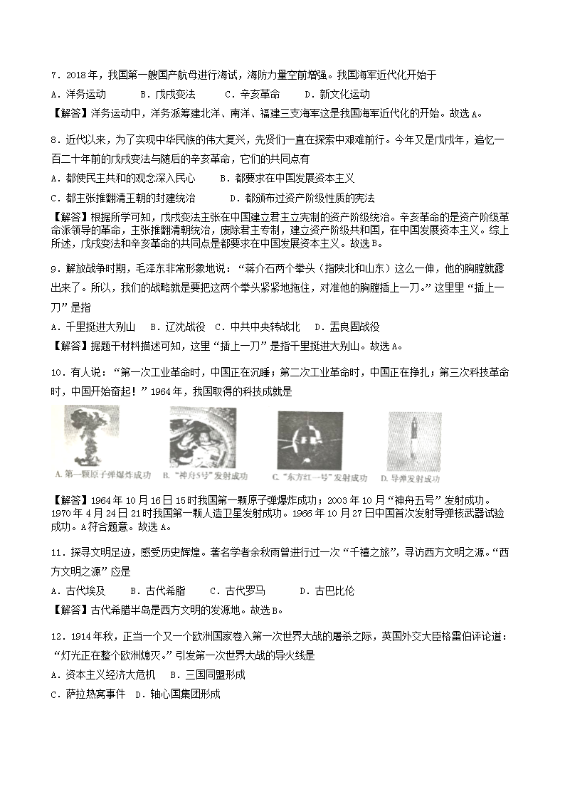 【文档名称】 2018年湖南省衡阳市中考历史真题及答案(Word版).doc
