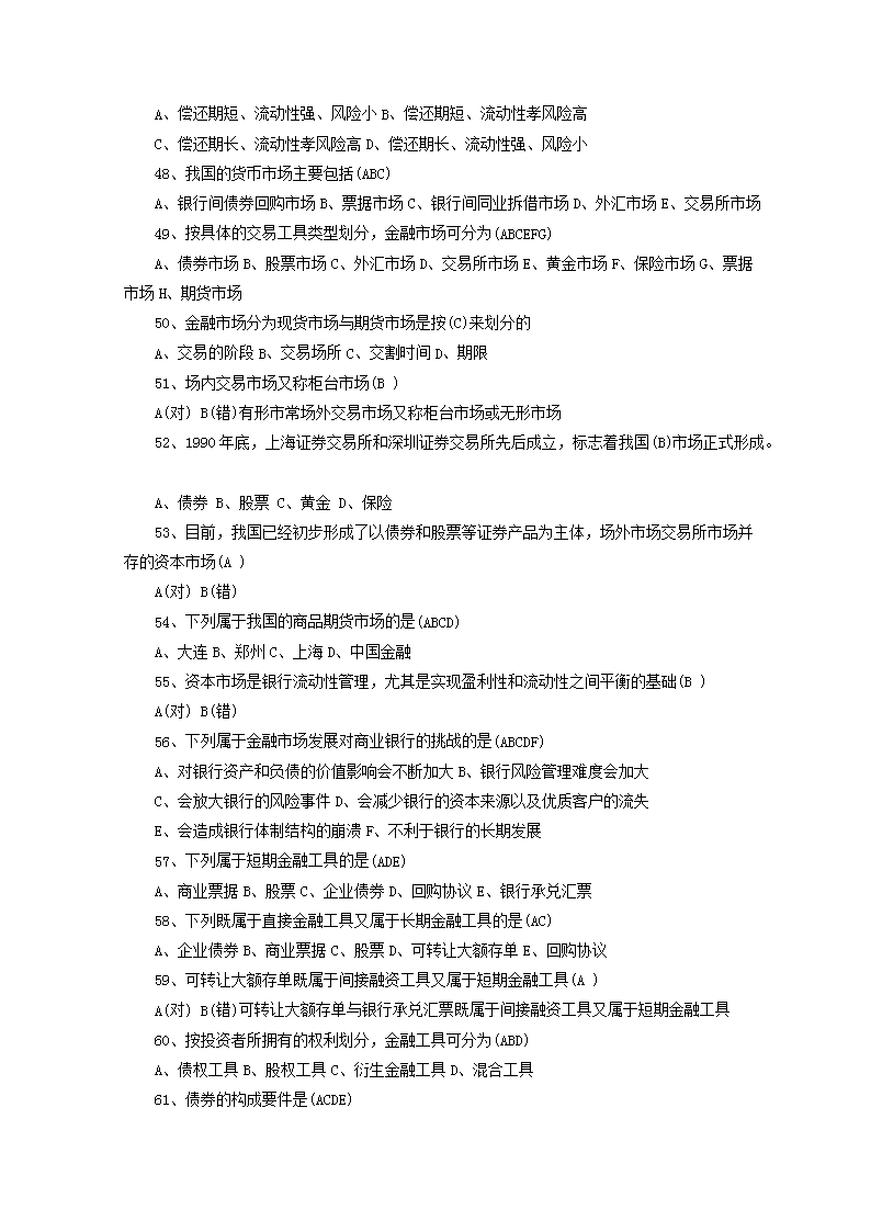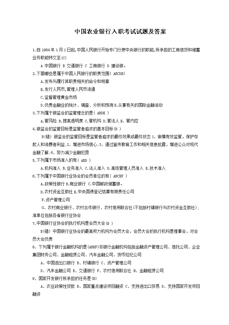 【文档名称】 中国农业银行入职考试试题及答案(Word版).doc