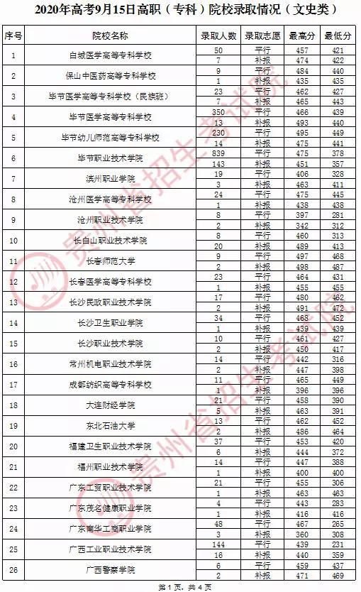 无忧考网从贵州省招生考试院了解到,2020贵州普通高校9月15日招生录取情况已经发布,现将招生录取情况整理如下: