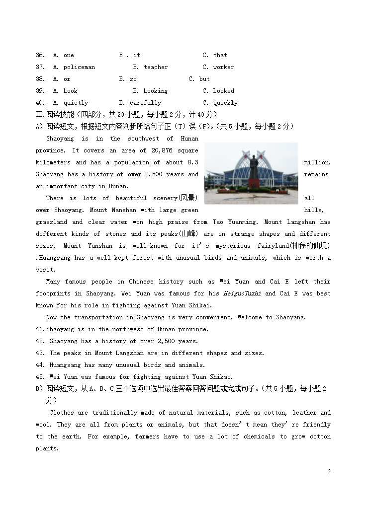 【文档预览】 无忧考网整理发布2018年湖南省邵阳市中考英语真题及答案(Word版),前五页预览如下: