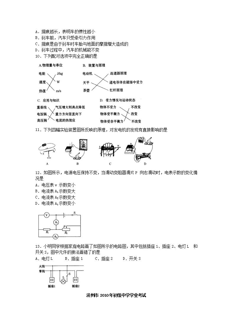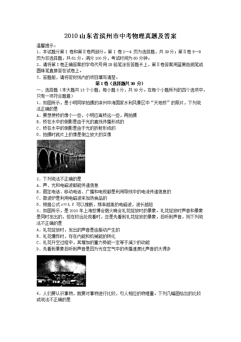 【文档名称】 2010山东省滨州市中考物理真题及答案(Word版).doc