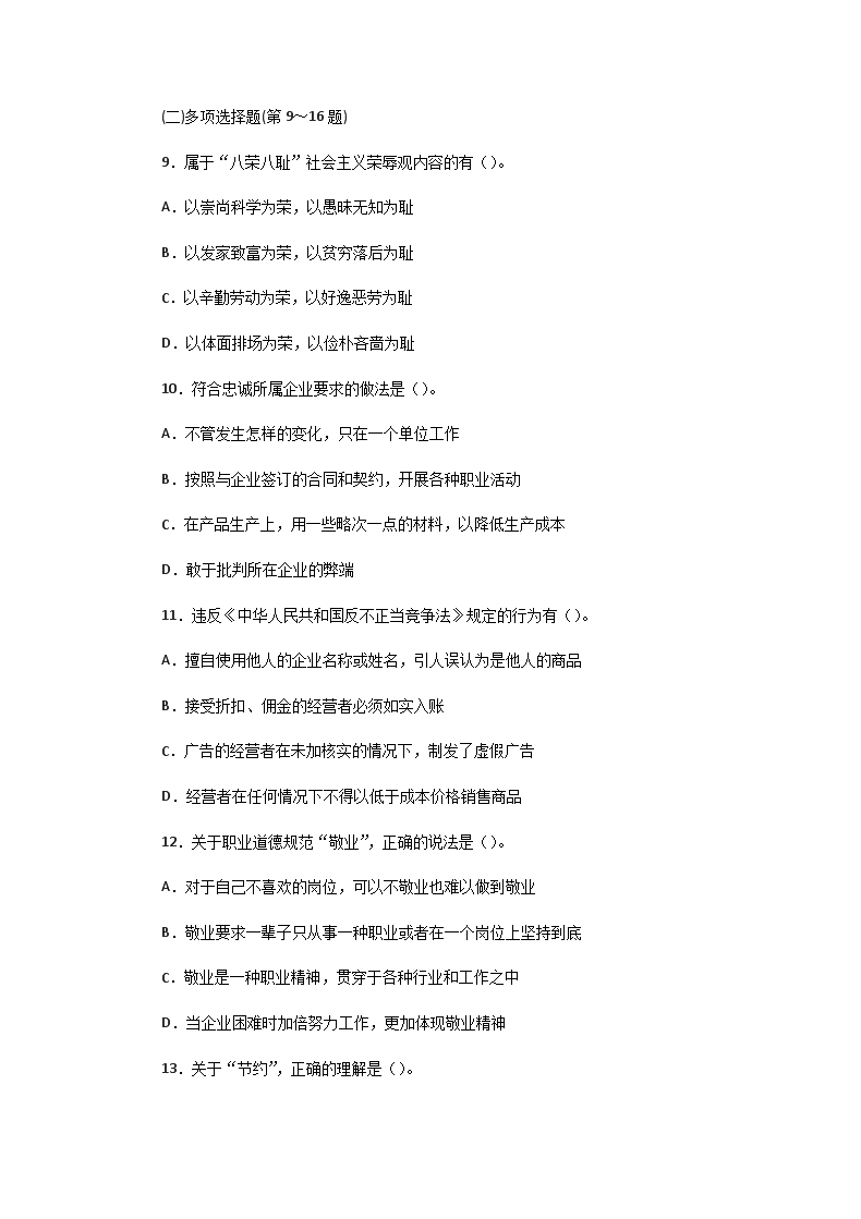 【文档名称】 2018年11月二级人力资源管理师职业道德真题(Word版).doc