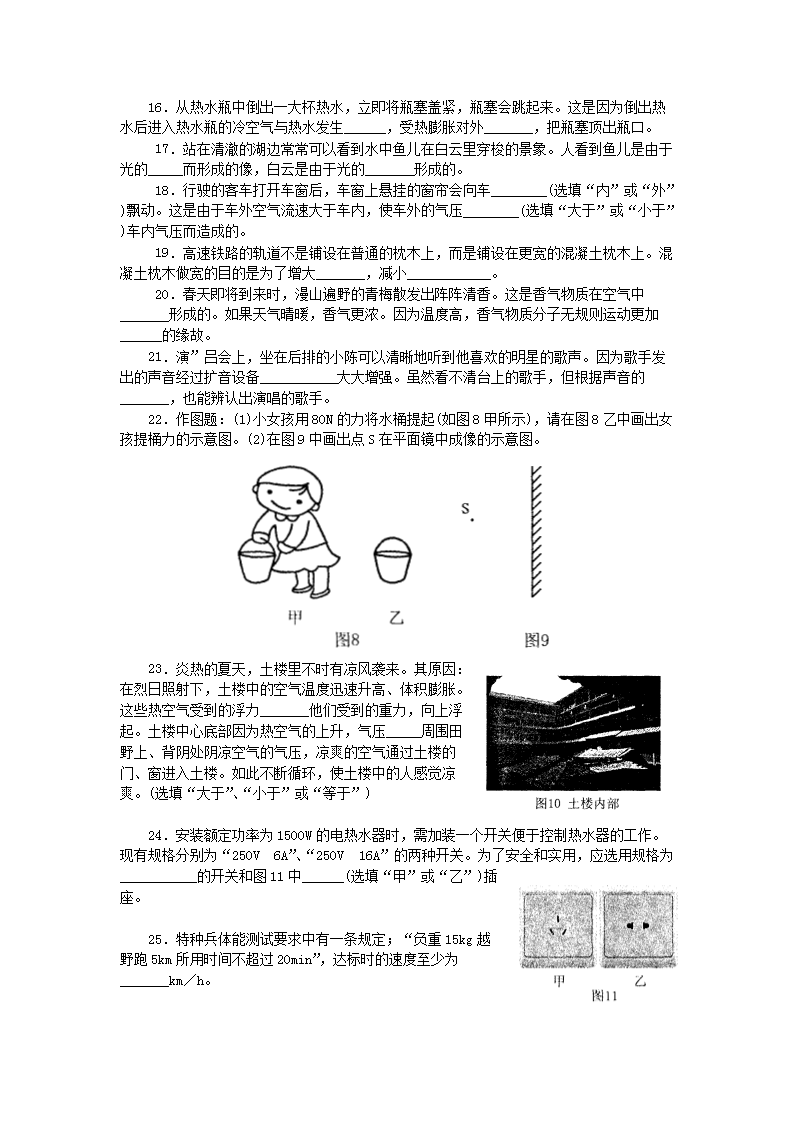 【文档名称】 2011年福建省漳州市中考物理真题(Word版).doc