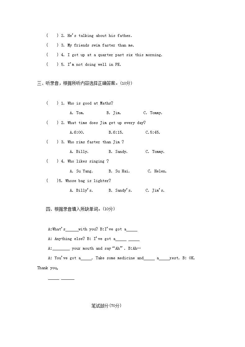 【文档预览】 无忧考网整理发布2015年江苏小升初英语真题及答案(Word版),前五页预览如下: