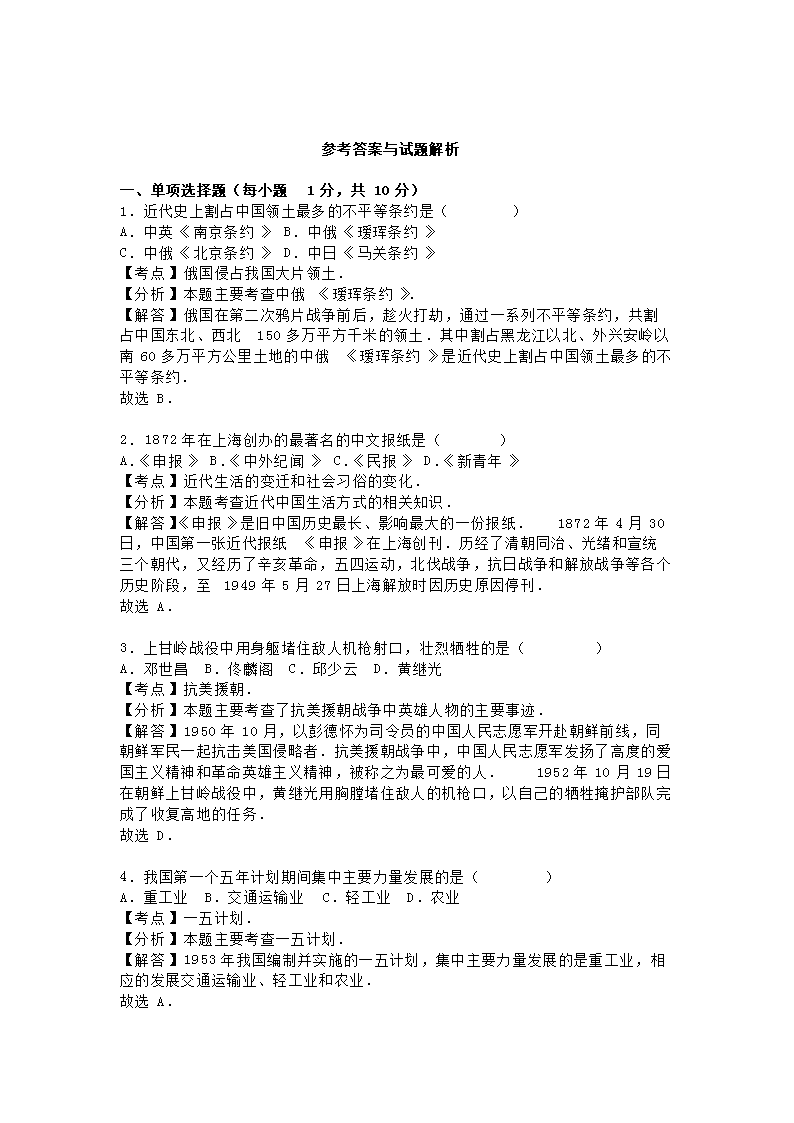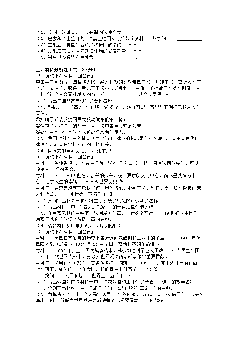 【文档名称】 2016吉林中考历史真题及答案(Word版).doc