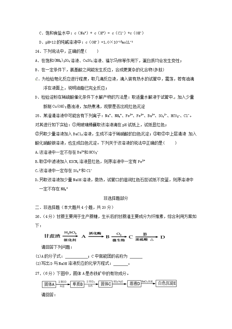 【文档名称】 2017年浙江普通高中会考化学真题(Word版).doc
