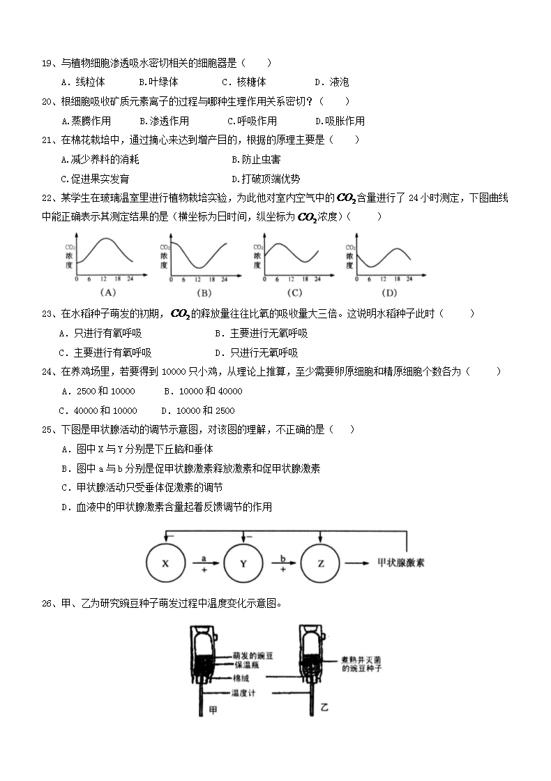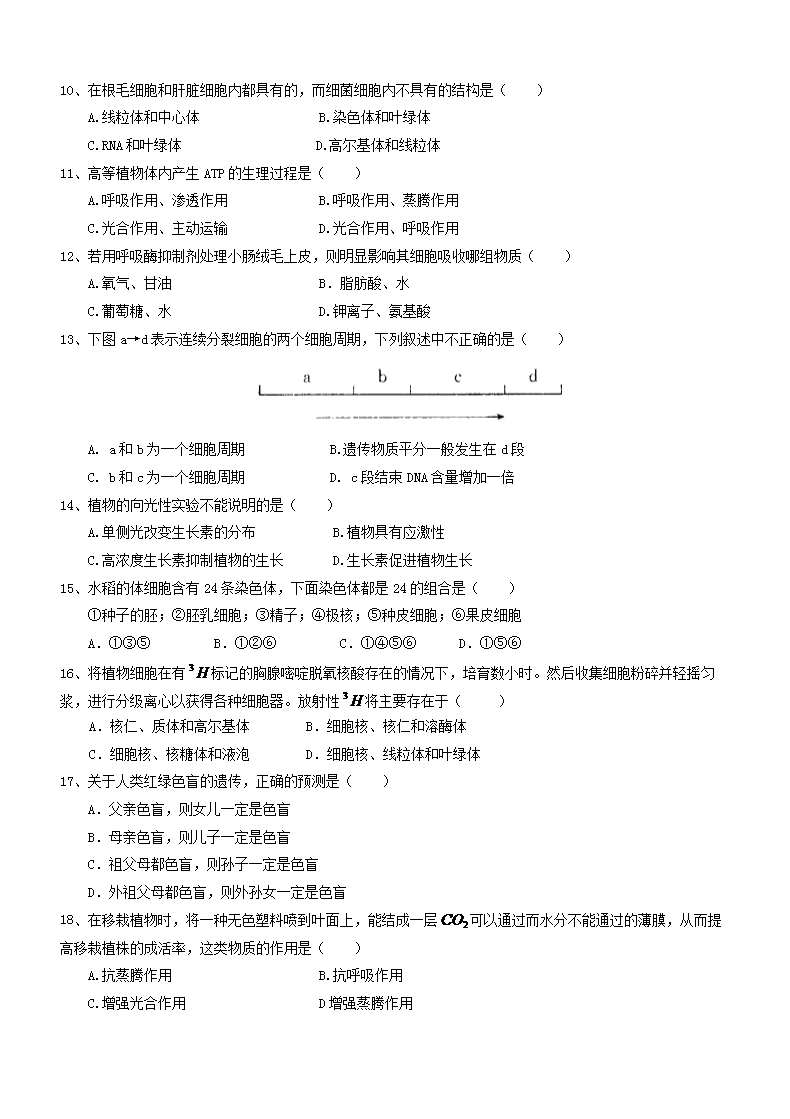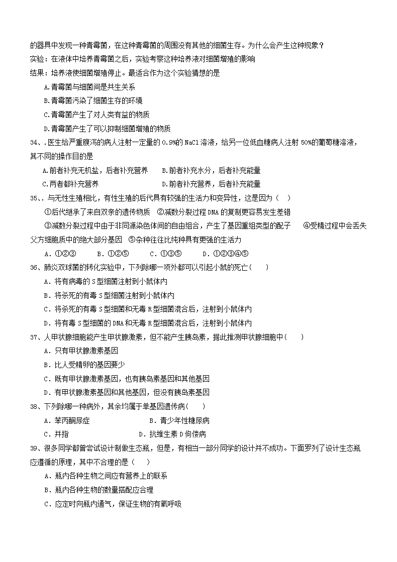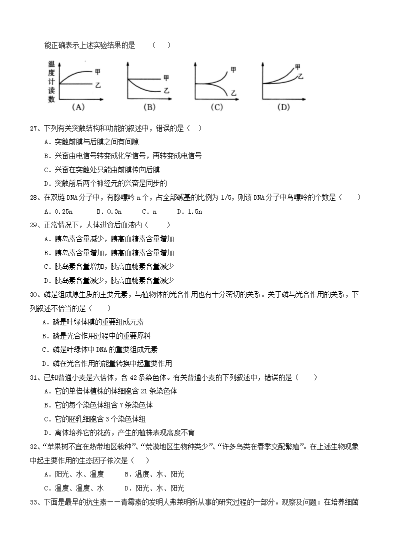 【文档名称】 2017年江西普通高中会考生物真题及答案(Word版).doc