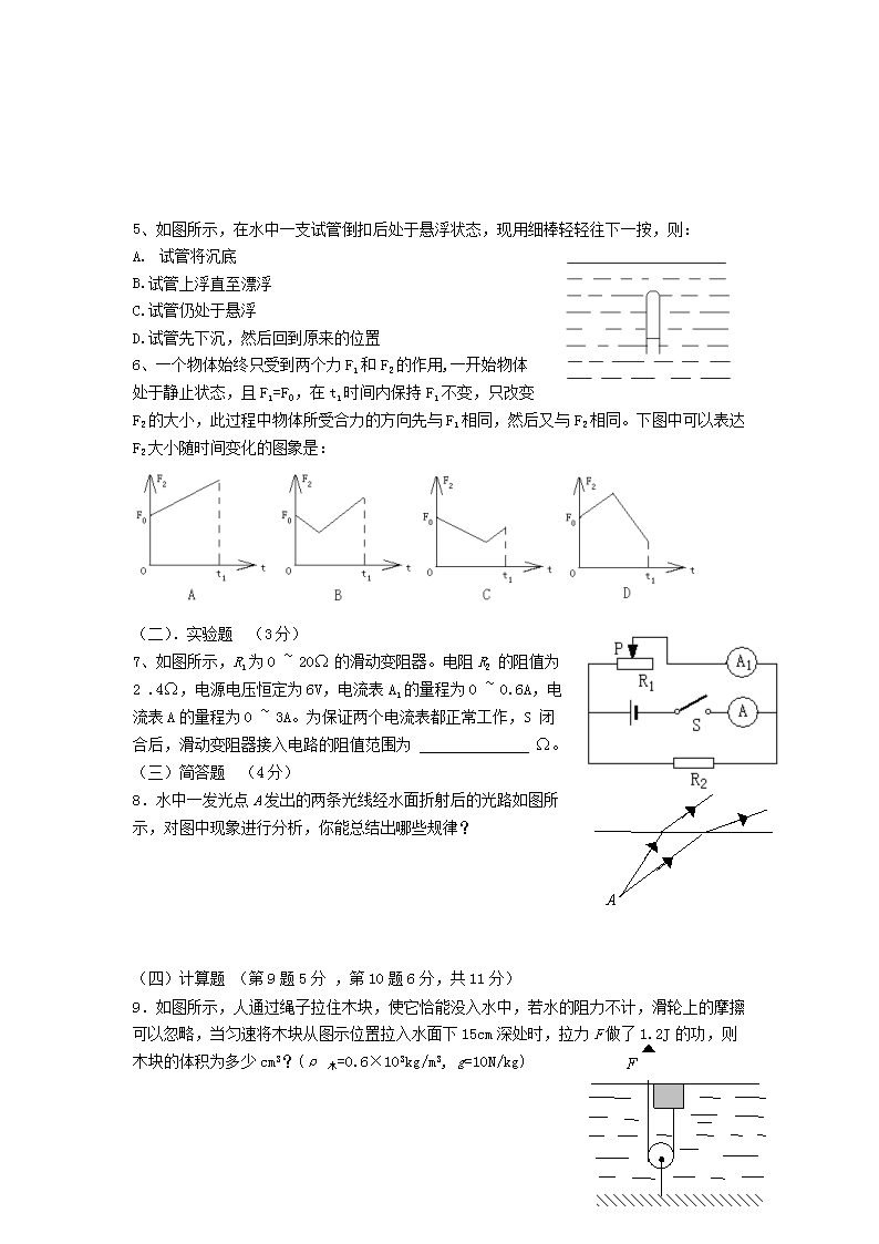 【文档名称】 2005年江苏盐城市初中物理教师招聘考试真题(Word版).doc