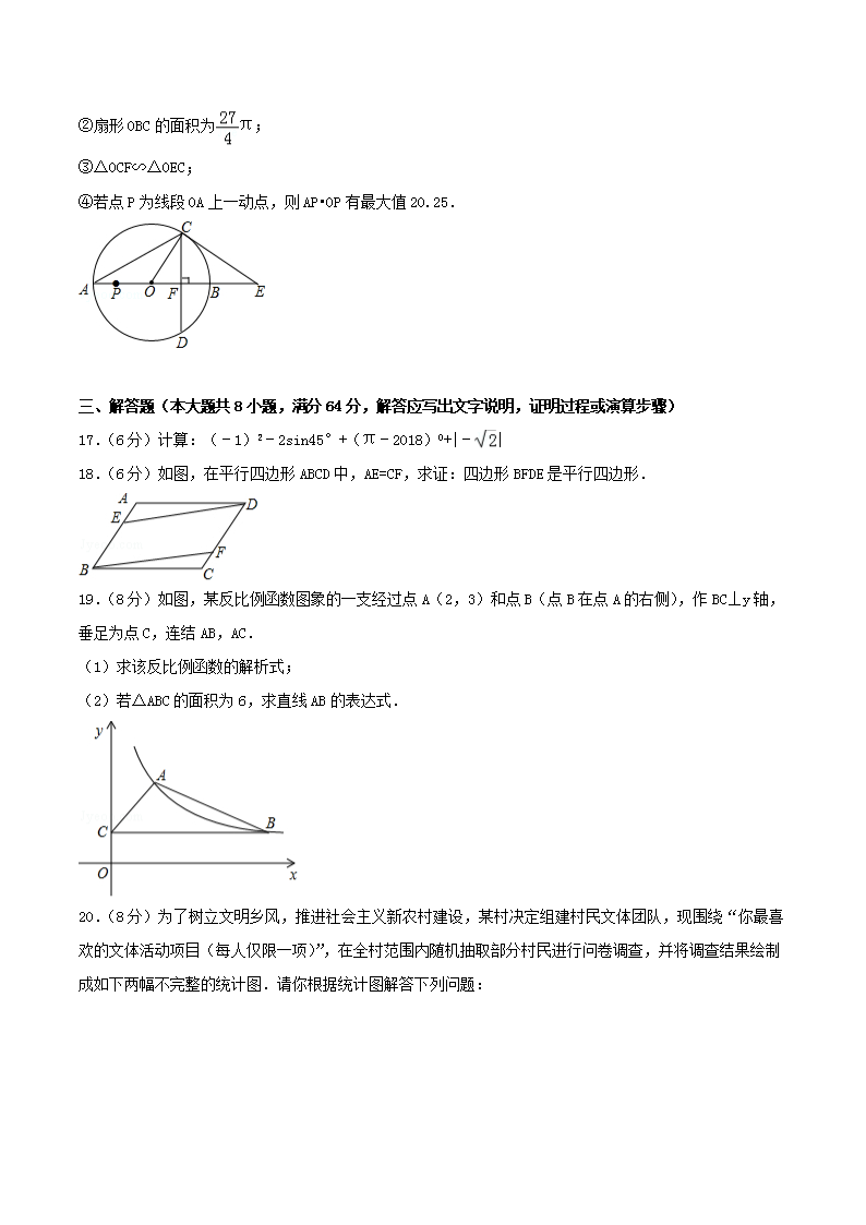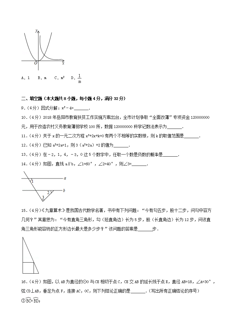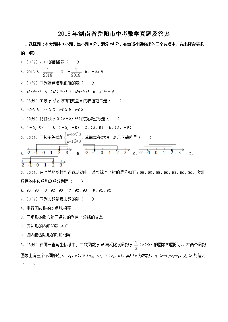 【文档名称】 2018年湖南省岳阳市中考数学真题及答案(Word版).doc