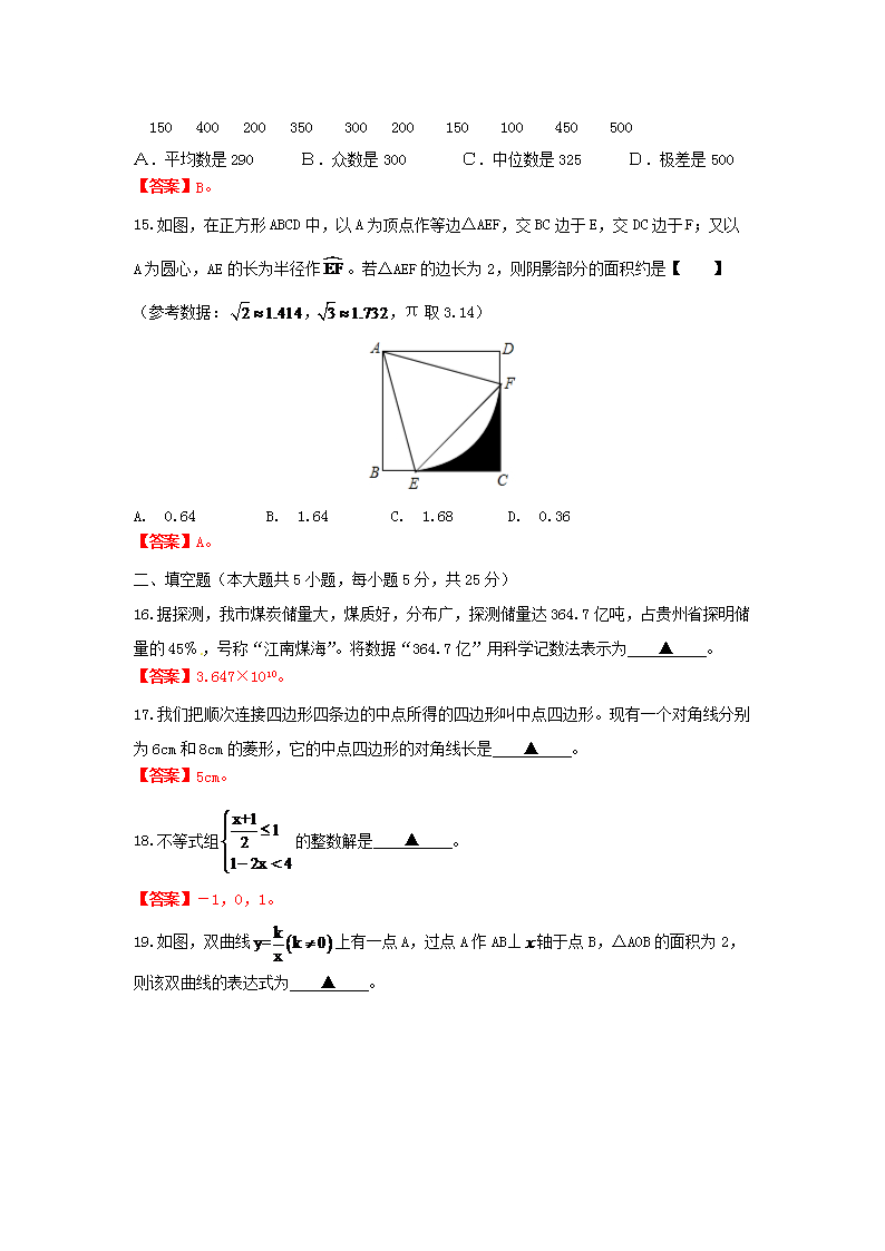 【文档名称】 2012年贵州省毕节市中考数学试题及答案(Word版).doc