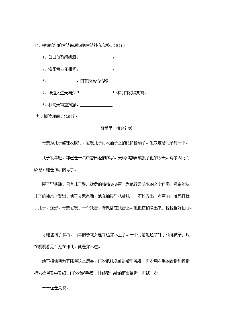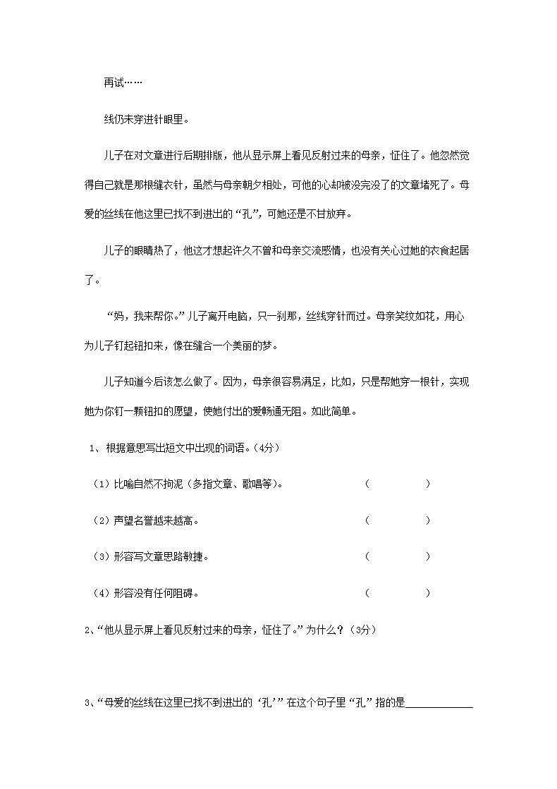 【文档名称】 2014年广西小升初语文考试真题(Word版).doc