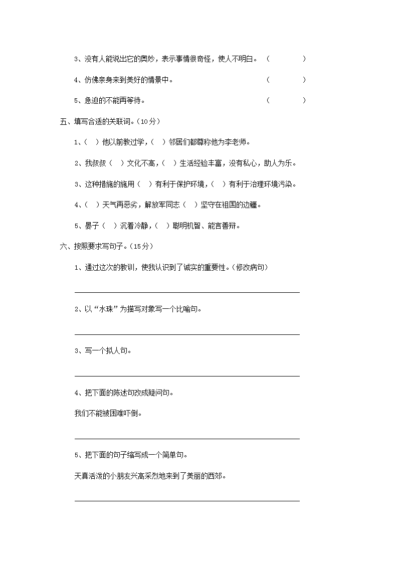 【文档预览】 无忧考网整理发布2014年广西小升初语文考试真题(Word版),前五页预览如下: