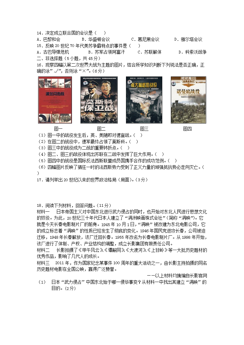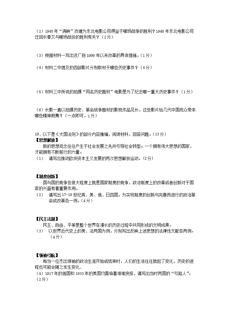 【文档名称】 2013吉林中考历史真题及答案(Word版).doc