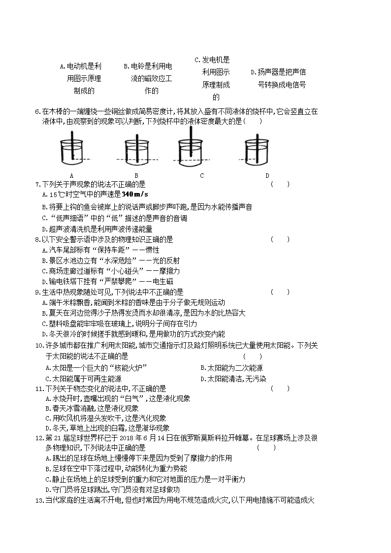 【文档名称】 2018年湖南省常德市中考物理真题及答案(Word版).doc