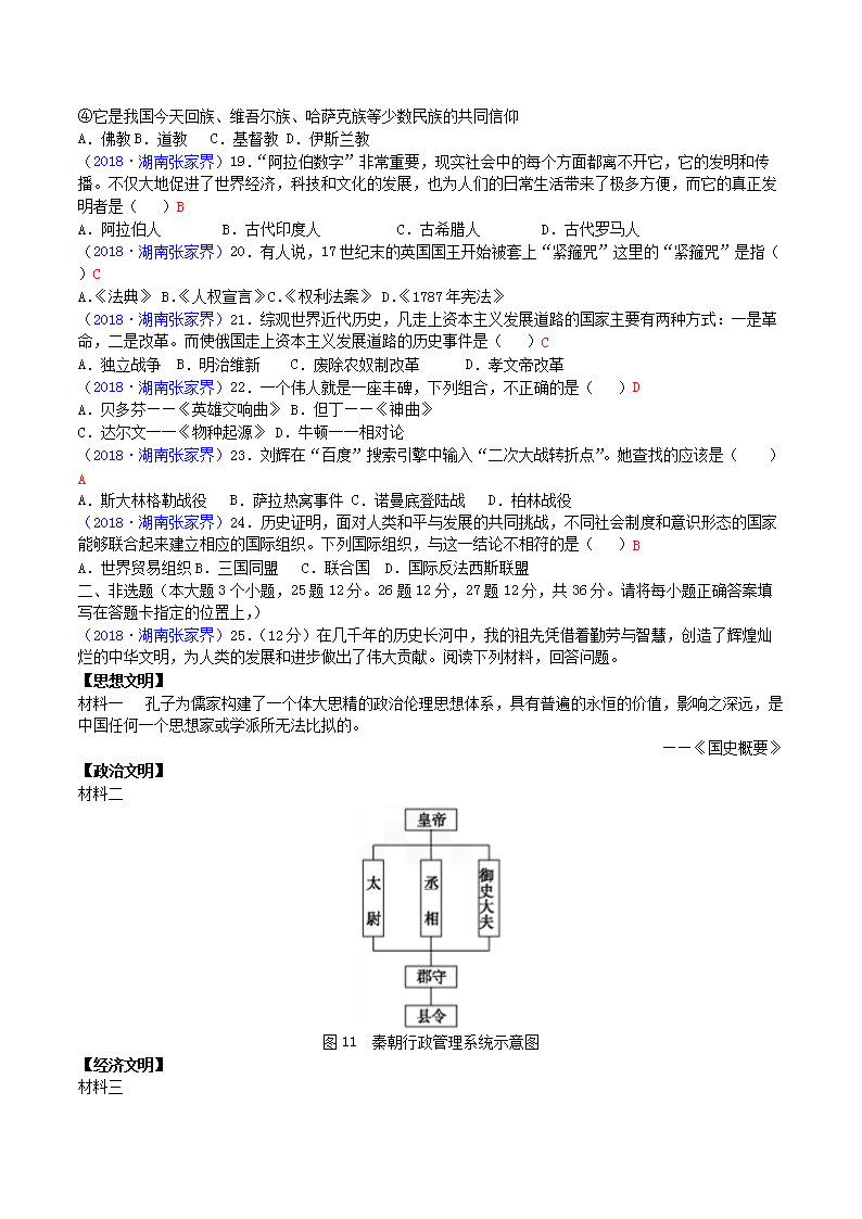 【文档名称】 2018年湖南省张家界市中考历史真题及答案(Word版).doc