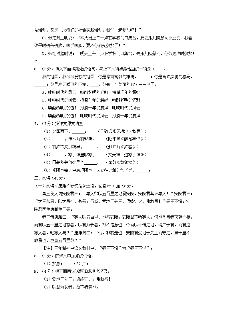 【文档预览】 无忧考网整理发布2015年黑龙江省双鸭山市中考语文试题及答案(Word版),前五页预览如下: