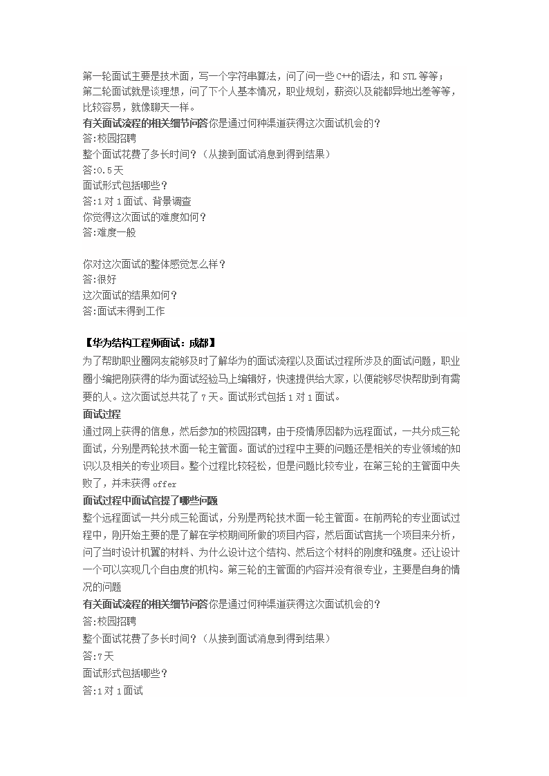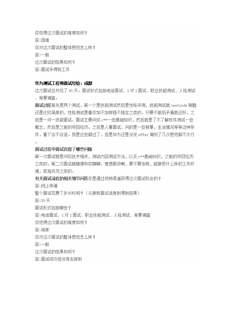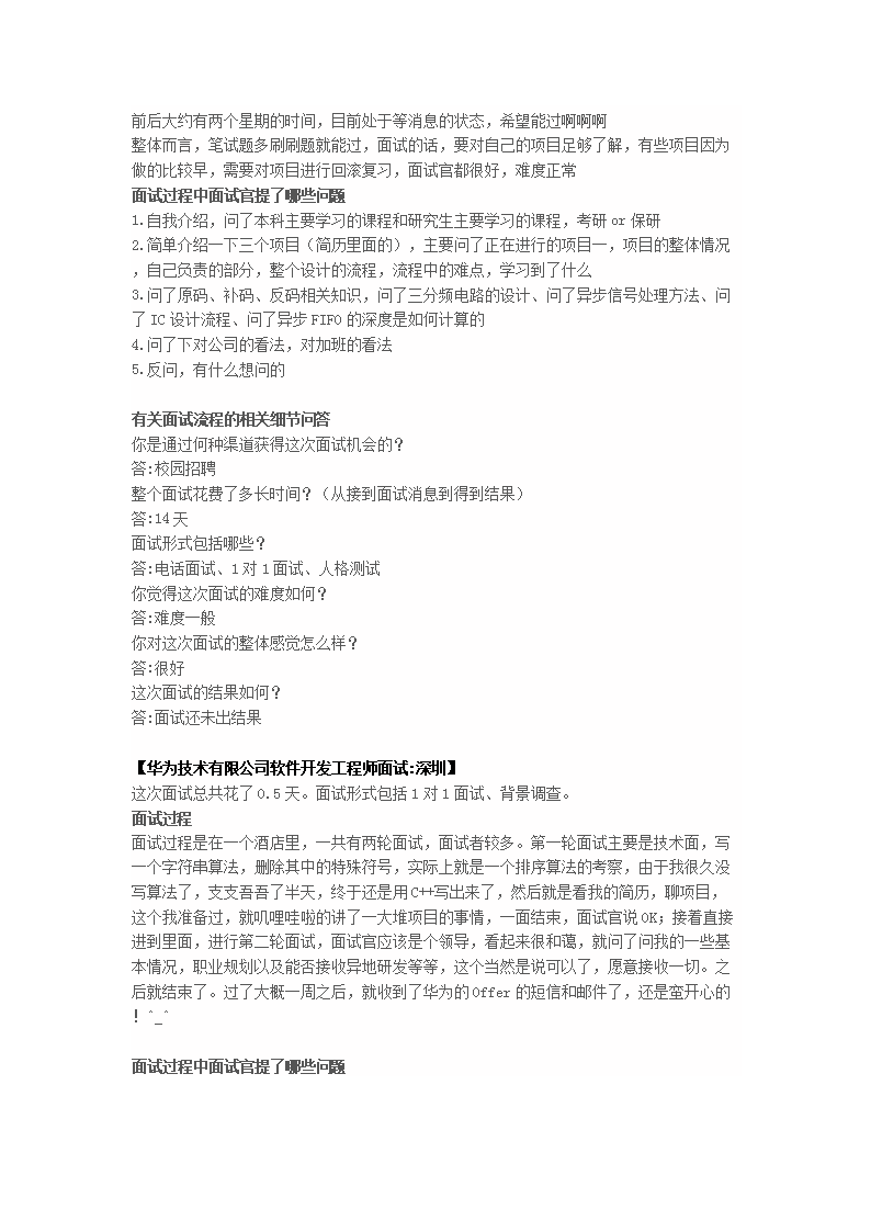 【文档名称】 华为面试试题题目及面试过程汇总(Word版).doc