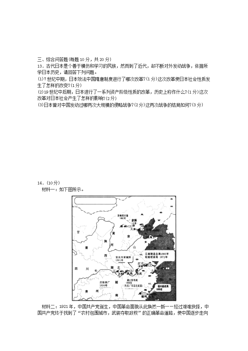 【文档名称】 2013年青海省中考历史真题及答案(Word版).doc