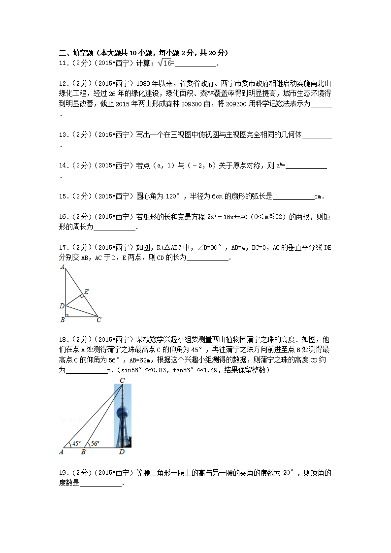 【文档名称】 2015年青海省西宁市中考数学真题及答案(Word版).doc